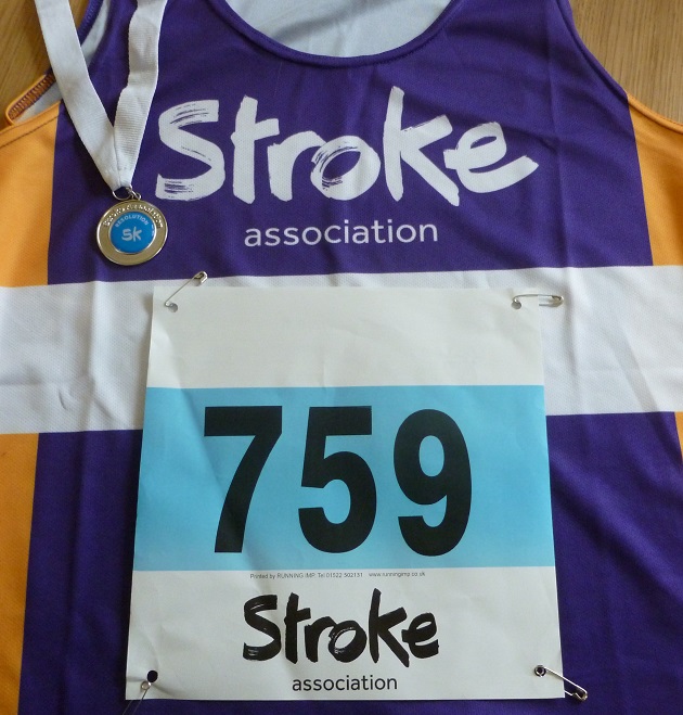 Very little of the course was actually flat, but the slopes were at least all gentle even if some of them were long. A step up from the flats of the riverside towpaths, but not a huge one. Pulling all the stops out, J ran the whole thing without a walking break – making this the furthest without a break she’s run (unless she’s been lying to me), in the very respectable time of 35m 52s! Hurray! To make it even better, we were met at the end by a nice lady with an enormous tub of sweets – jelly babies are rapidly becoming my favourite run snack, and J was able to swindle some Swizzels lollies. We also got a nice Resolution Run 5km medal, and we’d recieved Stroke Association technicalrunning vests as part of our race packs.