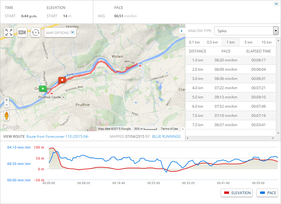 Tonight was Run England night, but with P working the night shift I was due to drop him off at work right in the middle of the RE session, so I went out for a run by the river at Prudhoe after dropping P off before it got too dark. I don’t know if it was not having eaten a huge amount through the day, and after a late finish from work dashing out again and then going for a late run without any food, but my heart wasn’t really in it. I went further than I usually go – making it down to Wylam road bridge, where I normally start from if doing my 10km Wylam-Newburn loop, I’ve never actually been that far from Prudhoe before, walking or running. In total it was probably just over an 8km there-and-back-again, but I only ran 7.5km of it, minus walking breaks down the steps lest I break my neck or go in the river (I’d never hear the end of that), and walked the last 0.5km as a cooldown back to the car. The two together – Prudhoe to Newburn and back at about 18km will be a really good, flat training run for the half-marathon when I can find a bit more energy to try it! I felt like I was mainly moving through habit rather than any real willpower and certainly wasn’t going to be winning any prizes for pace! Talking to B, who went out with the Run England guys, they did a pretty similar distance in a similar time, but I can guarantee their route was much hillier than my flat one! I went anyway, a few more miles on the trainers. Fingers crossed tomorrow’s session goes better!