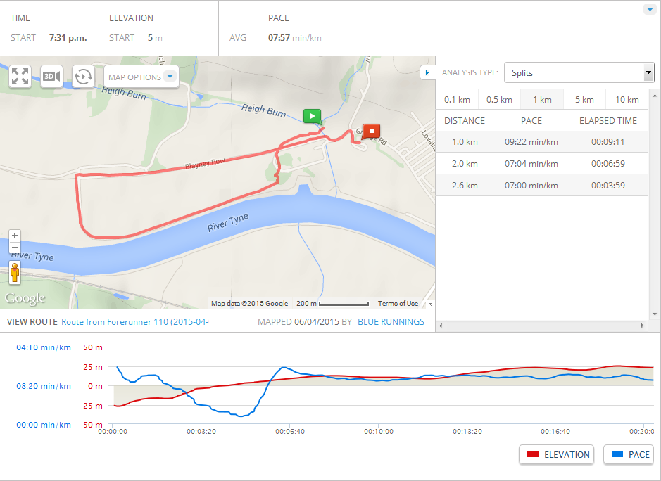 The evening was a short 2.5km loop around Newburn leisure centre, the big dip in pace on the map/pace/elevation diagram at the bottom is where we stopped to have a go on the exercise equipment at the playpark! They had a funky leg swinging thing, but sadly for J, no monkeybars and the pull-up bar was fenced off. We continued on our loop at a higher exertion level than J usually hits, so it was a really good short-distance lung-hitter for her. Having done the hilly parkrun and the 10k at Tyneside over the 2 days before, it was much more comfortable for me but a welcome leg stretcher 🙂