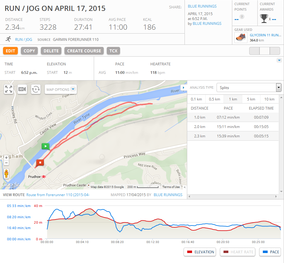 I use a Garmin Forerunner 110 for tracking my distance and pace etc. as I potter about, and this also came with a heart monitor which I’ve never used and thought that today, given it was a short one, I’d try out. I’d read in the instruction book that some people experience chaffing if worn for longer runs, so trying it for the first time on a monster distance sounded like a bad idea! First challenge – how does one put it on? It’s supposed to go around your chest just below the breastbone in contact with your skin, but consider for 2 seconds the primary essentials of a woman’s running wardrobe and it’s easy to see why I was slightly perplexed by these simple instructions. Fortunately the internet came to the rescue again! Some kind soul took some pictures confirming my suspicions 🙂 I didn’t really want to be messing around trying to adjust or remove it in the middle of a busy riverside path if I could help it! As it happened, on the run itself it was easy to forget I was wearing it – which is what you want, but I’m not sure how it is on a longer sweatier run, I may try it for Otterburn but make sure I put some vaseline or something on the back of the non-sensor bit just incase it starts to chaffe. See how laden I want to feel 🙂