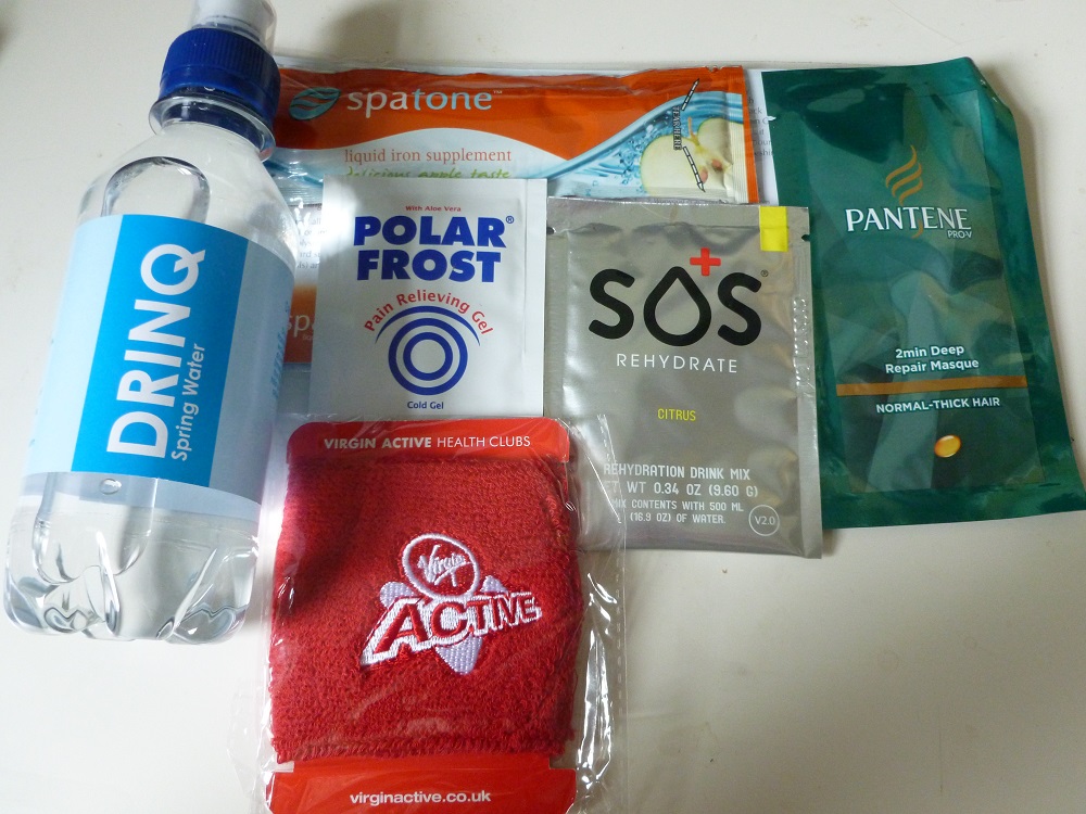 The finishing pack contained many odd things I haven’t really figured out what to do with yet; shampoo, cold gel, rehydration drink mix, a sweatband and an iron supplement liquid gel thing called ‘Spatone’ – I’m not really sure whether I’m supposed to drink it or put it in the bath with a name like that! There was also a Rocky chocolate bar, but I knew what to do with that and devoured it as soon as I found it in the bag π I’ve never really tried gels and drink mixes and stuff…water and jelly babies or dextrose tablets have stood me fine so far, and they’re much cheaper! The shampoo I might actually use – my hair was a proper bird’s nest from the rain and wind by the end (see pic further down!) and it actually stayed that shape even after I’d removed the hairband before I sank into a well-earned bath! I’ve yet to garner the courage to drag a brush through it…