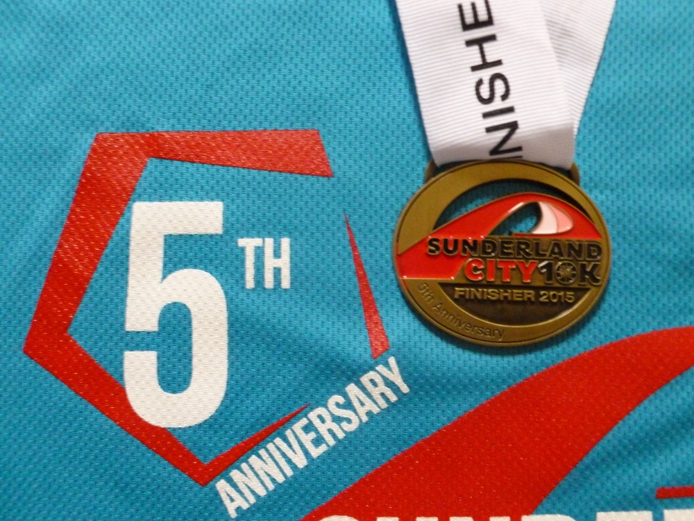 Well, today was a stark contrast to the last 10km road race I did! Tyneside only a few weeks ago was blue skies and blazing sunshine, and today at the Stadium of Light in Sunderland it was bucketing it down with rain and I prefer not to think it could have been wetter or windier! Of course, now I’m sitting inside typing away at the computer the clouds have mostly cleared and the skies are blue with a gusty breeze…nice running weather – not too hot.