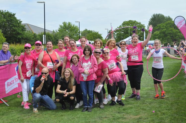 Today was the Race for Life event in Guildford at Surrey Sports Park. I was attending this not as a competitor, but as a supporter for a very special group of women. Last year, my Mum joined one of the local Slimming World groups, and soon after several members started going out for walking sessions, at first once a week, then anything up to three – complimenting their fat-free eating with a healthy dose of exercise. These ladies have covered areas all over Guildford, and even walked back along the river from Godalming – this was their first group event, and they went under the team name ‘The Naughty Nibblers’. There was one race wave leaving in the morning, and another set up for the afternoon – we were at the morning event. The weather was hot and muggy as it was yesterday but fortunately not beaming too brightly on the attendees. I don’t think the warm-up suited everyone, it was very shake-your-booty-esque and does not suit the less flexible or those not familiar with fitness classes and their very enthusiastic trainers! A few knees and joints were not happy – and that was before setting off for their three miles! The wave was split into runners, joggers and walkers, and apart from this all left together. There were hundreds if not thousands of participants. I got excited anticipation butterflies from seeing the start and I wasn’t even doing it! There was such a great buzz in the air ๐
