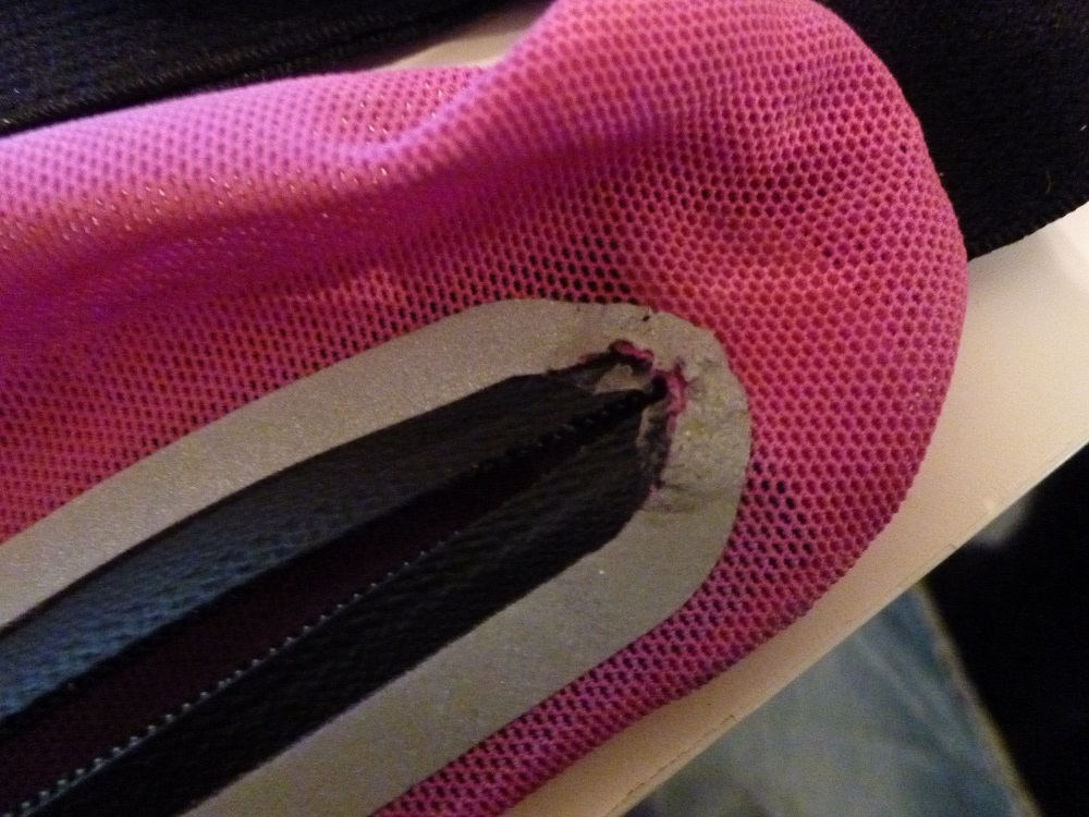 It doesn’t look like I can get it on again very easily either so it looks like I’m thanking this one for its service and retiring it from further use while I hunt for a new one! After splitting the zip to obtain my phone I ended up using one of my bib safety pins to hold it shut least I scatter my belongings to the four winds! Kinda need my house keys ya know?!