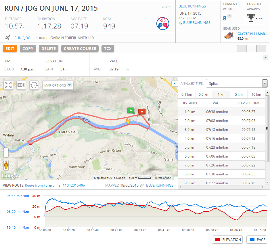 With this race organised by the Elswick Harriers covering J & I’s regular 10k loop basically perfectly, it would have been a criminal one to miss! We normally run it from Wylam up to Newburn, and then back the other side past the golf course, but this started at Newburn, went along our normal first half, which is very flat, and then came back past the golf course in the opposite direction to the one we normally do this leg in. I knew there was a reason we did it the way we normally do! There’s a few small hills on the golf course and our route covers most of them in the downhill direction, which of course meant that going this way they were uphill instead. Ho-hum, variety is the spice of life and all that.