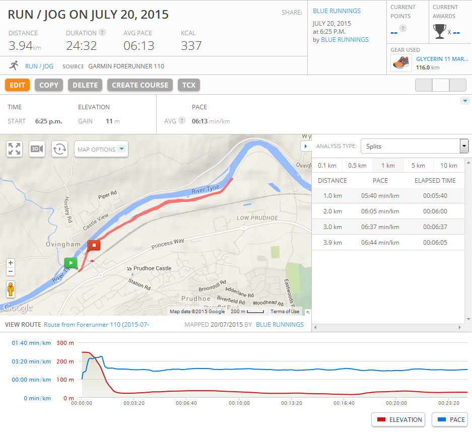 I don’t tend to look at my watch much if at all when I’m out jogging, I don’t want to be concentrating on times or distances unless it’s to shove food in my face or I’m on a time limit like tonight, but being able to look at the data when I get home sometimes gives me a morale boost I didn’t find on the run – tonight’s may only have been a short one, but I’ve actually broken my pace record from April by 1 second making this my fastest run so far 🙂 Now to keep that pace over a longer distance without dying…