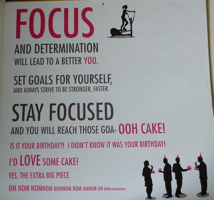 Dublin really knocked my energy levels for six, and it was 2 weeks before I did any exercise at all, and 3 weeks before I actually got my trainers on for a run. There are a multitude of broken-record excuses for this – it was so FRIKKING HOT, I had no energy, and I am a lazy bum when given the opportunity! So I sat around on my butt and ate vast quantities of cakes instead π Everyone should have a hobby π My calendar page for this month has been most appropriate (it’s The Oatmeal’s wonderfully motivating calendar for 2015)